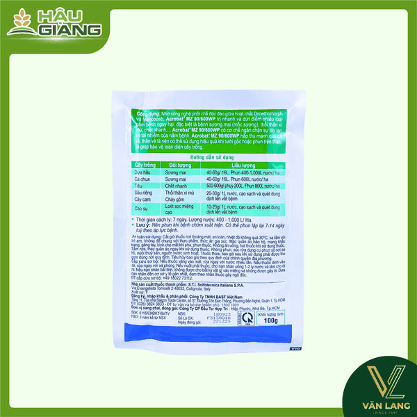 ACROBAT® MZ 90/600WP là sản phẩm cao cấp từ BASF, được phát triển theo công thức kép ![]()