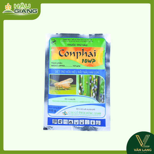 CONPHAI 10WP là sản phẩm dạng bột ướt đến từ Công ty Cổ phần Đồng Xanh, được sử dụng phổ biến trên cây lúa nhằm ổn định mật số rầy và rệp chích hút trong suốt quá trình sinh trưởng. Với hoạt chất Imidacloprid 10%, sản phẩm phát huy khả năng thẩm thấu nhanh, lan tỏa đều trong cây, giúp ruộng lúa duy trì trạng thái sinh trưởng cân đối, xanh bền và đồng đều.