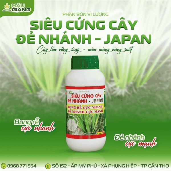 SIÊU CỨNG CÂY ĐẺ NHÁNH JAPAN là sản phẩm hỗ trợ sinh trưởng chuyên biệt giúp cây trồng phát triển đồng đều, cứng cáp và đẻ nhánh vượt trội.
