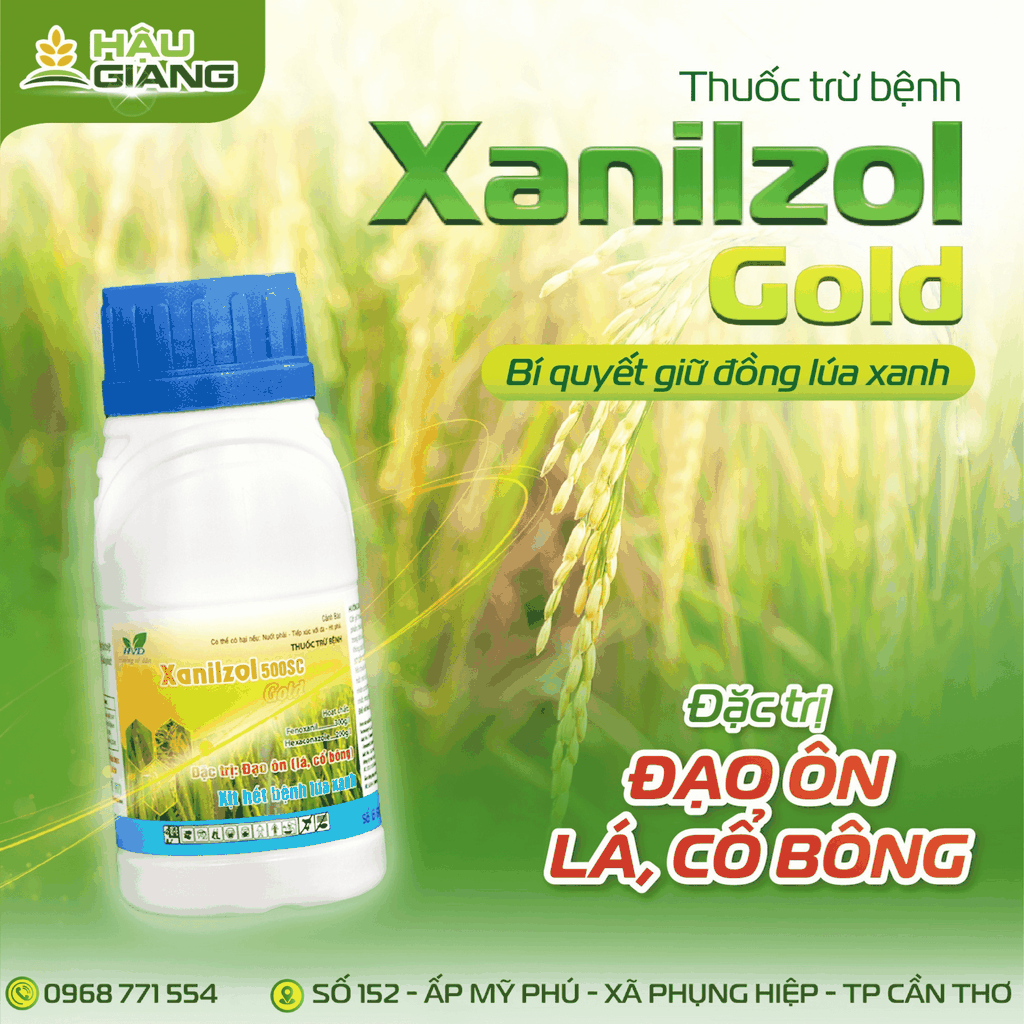 Xanilzol Gold 500SC là giải pháp phòng trị lem lép – khô vằn – đạo ôn hiệu quả cho lúa, giúp đồng ruộng xanh khỏe, hạn chế bệnh trong suốt vụ, bông sáng – hạt chắc và năng suất bền vững.