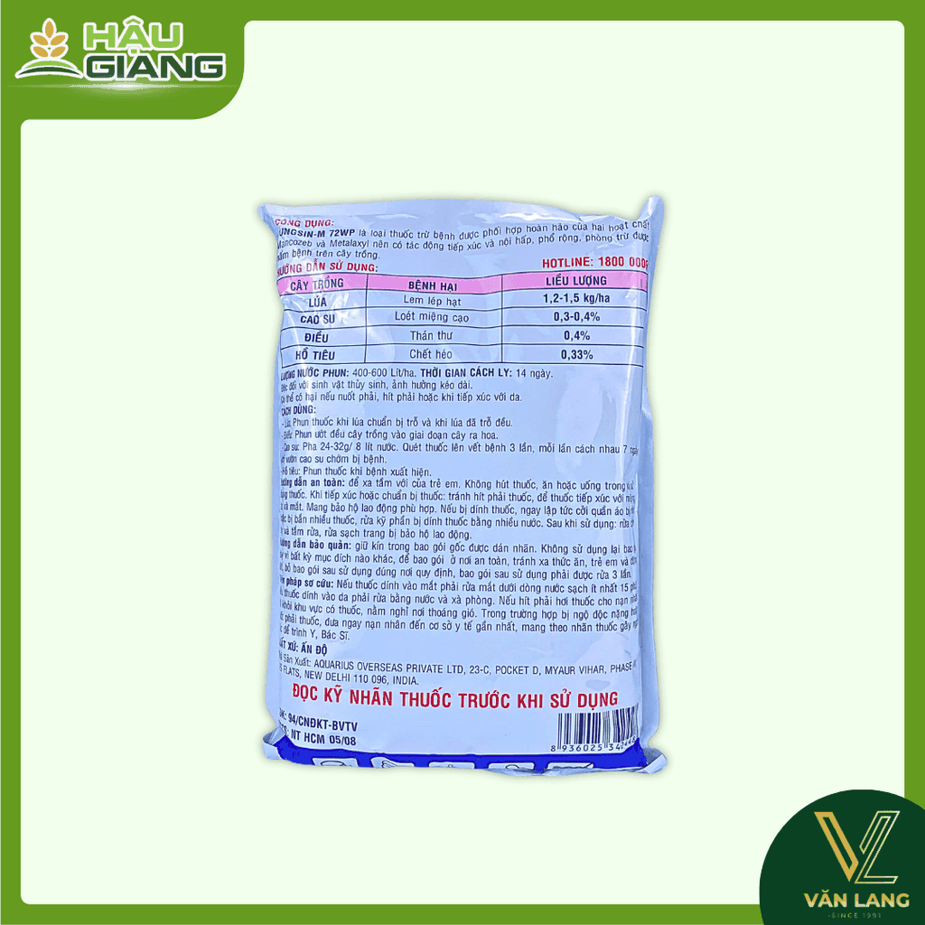 Metalaxyl: 8% w/w – Cơ chế lưu dẫn, thấm sâu, hỗ trợ kiểm soát nấm từ bên trong mô cây.