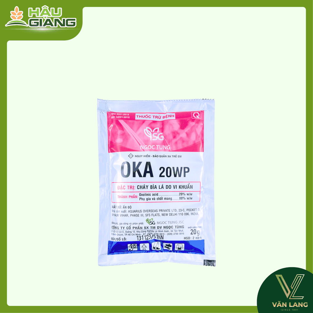 OKA 20WP là sản phẩm chuyên dụng trong quản lý vi khuẩn trên cây trồng, đặc biệt mang lại hiệu quả vượt trội đối với tình trạng cháy bìa lá trên lúa và loét trên cây có múi. Với khả năng nội hấp mạnh, sản phẩm giúp bảo vệ cây trồng ổn định, duy trì sinh trưởng khỏe mạnh và nâng cao năng suất.