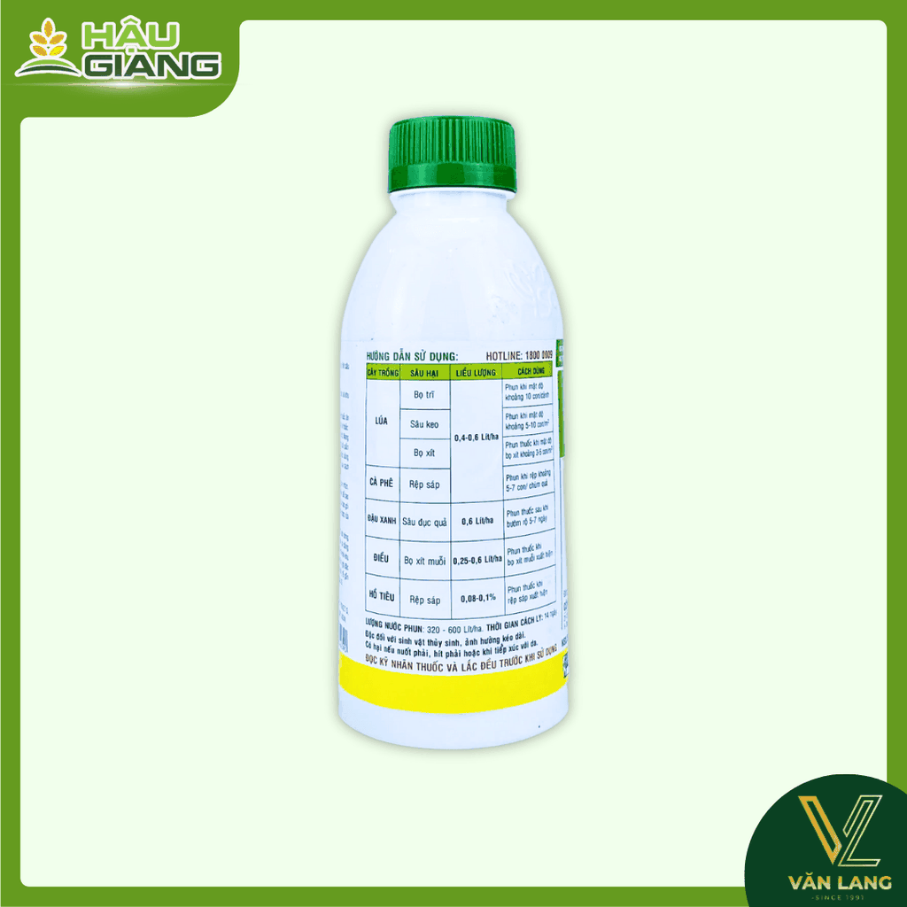 Lúa: 0,4 – 0,6 lít/ha, giúp kiểm soát sâu keo, bọ trĩ, bọ xít.