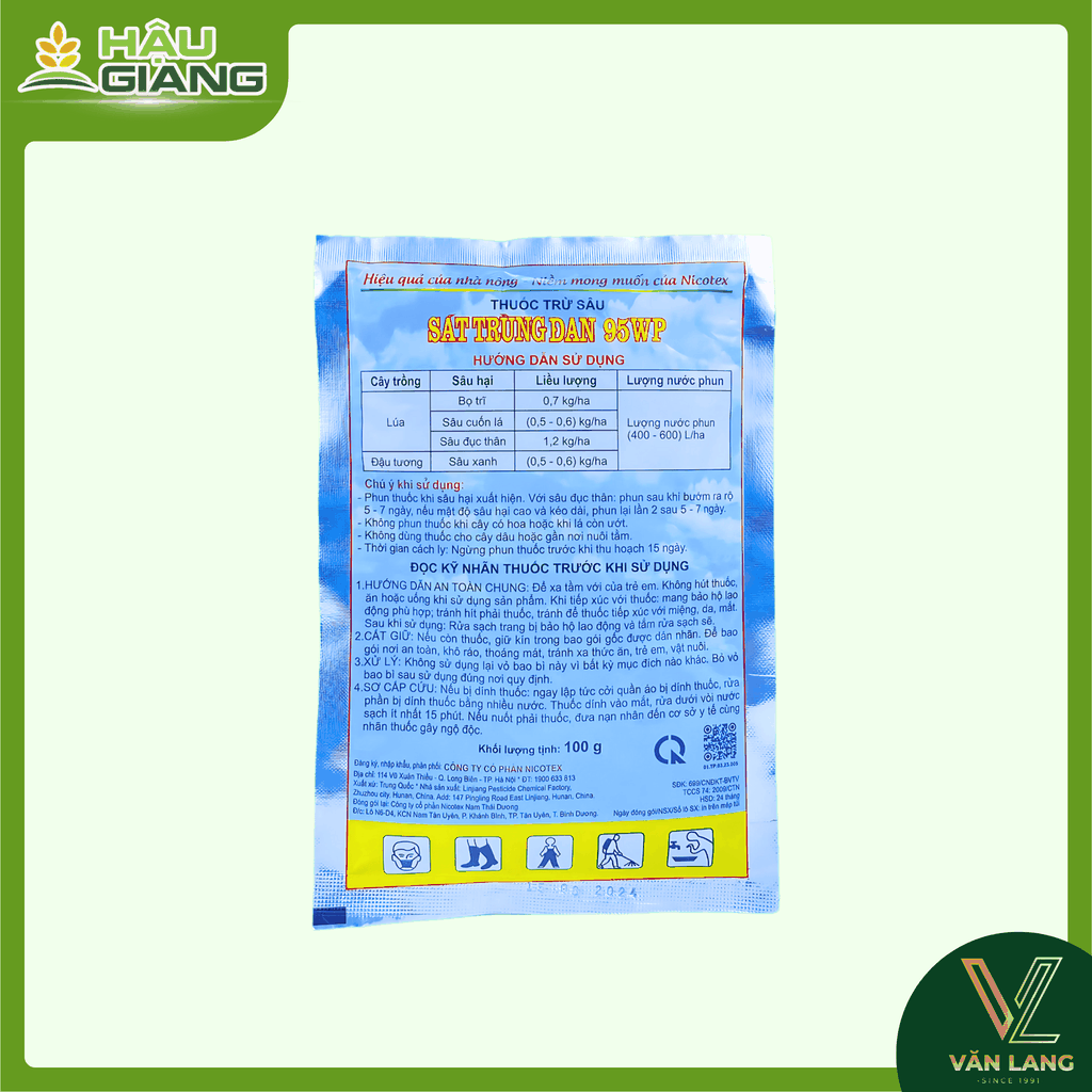SAT TRUNG DAN 95WP là lựa chọn phù hợp cho bà con cần giải pháp kiểm soát côn trùng hiệu quả, ổn định và dễ sử dụng trong canh tác lúa và cây họ đậu. Với hoạt chất hàm lượng cao và dạng bào chế tiện lợi, sản phẩm giúp bảo vệ ruộng đồng, duy trì sinh trưởng cây trồng và góp phần nâng cao hiệu quả mùa vụ.