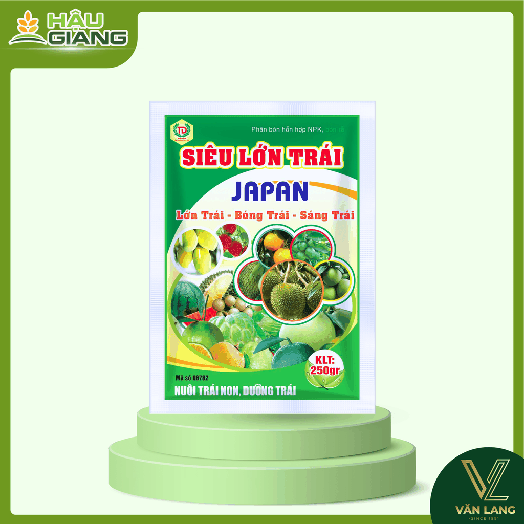 SIÊU LỚN TRÁI JAPAN là sản phẩm dinh dưỡng chuyên dùng cho giai đoạn nuôi trái, được nghiên cứu với công nghệ tiên tiến từ Nhật Bản, hỗ trợ cây trồng phát triển cân đối, trái lớn nhanh, chắc ruột, sáng bóng và nâng cao hiệu quả canh tác.