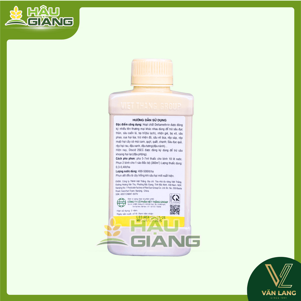 DISCID 25EC là sản phẩm dạng nhũ dầu (EC) với hoạt chất Deltamethrin 25g/lít, chuyên sử dụng trong quản lý nhiều đối tượng sâu hại trên cây trồng nông nghiệp.